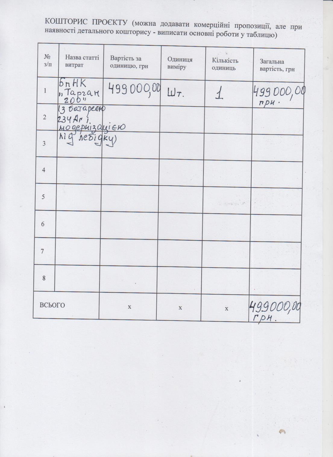 БпНК "Тарган 200"( з батареєю 234Аг і модернізацією під лебідку)