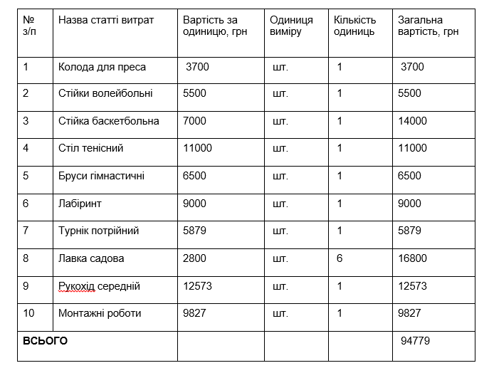 Основною метою проекту є будівництво сучасного мультифункціонального спортивного майданчика, піклування про здоровий спосіб життя мешканців села та учнів гімназії.